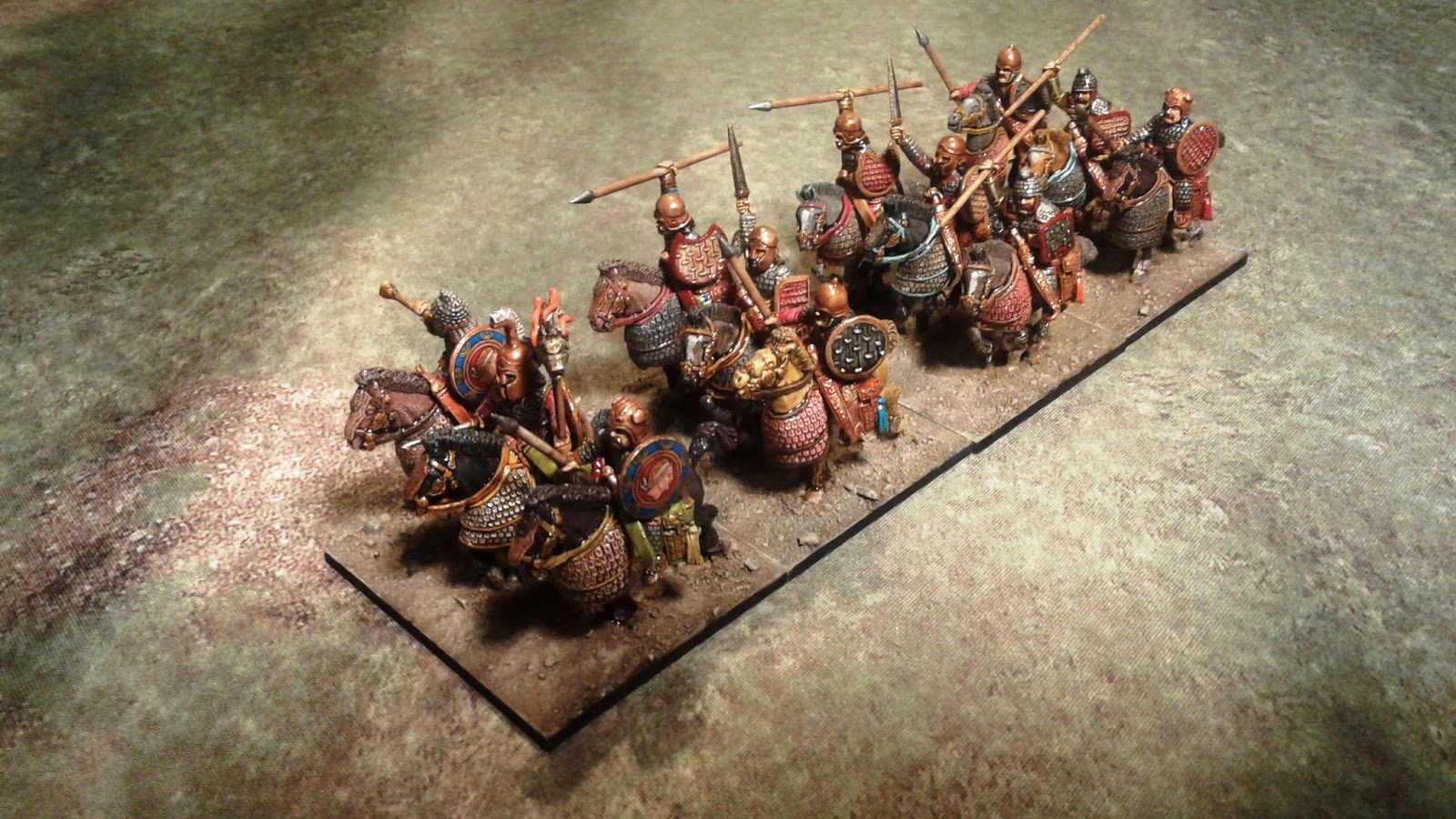 Just finished (except for flocking) a group of 28mm Skythian Noble Cavalry from 1st Corps. I am slowly building a Mithradaitic Army for Big Battle DBA. I am using the Skythians as the bodyguard for Mithradaites. I gave the command element Hellenistic shields, to give them a little Pontic flavor.